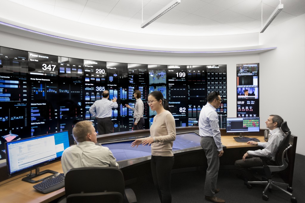 Passfolio Finance Risk Management Center provides a comprehensive view of the various investment portfolios and how they fit within pre-established guidelines. Built in 2014, its front-end consists of a 27’ by 8’ interactive touchscreen designed to visualize data in ways that allow for rapid comprehension. Its back-end systems, which connect to every Passfolio Finance office worldwide, continuously run a wide range of operational readiness, risk, and stress test monitors.